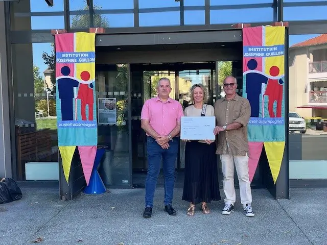 Lors de la fête de l’institution, la représentante de la fondation a symboliquement remis un chèque à Gilbert Guderzo notre Président et Jérôme Rousseau notre Directeur