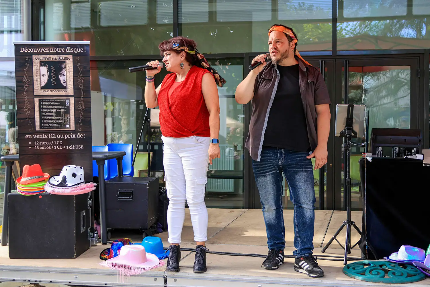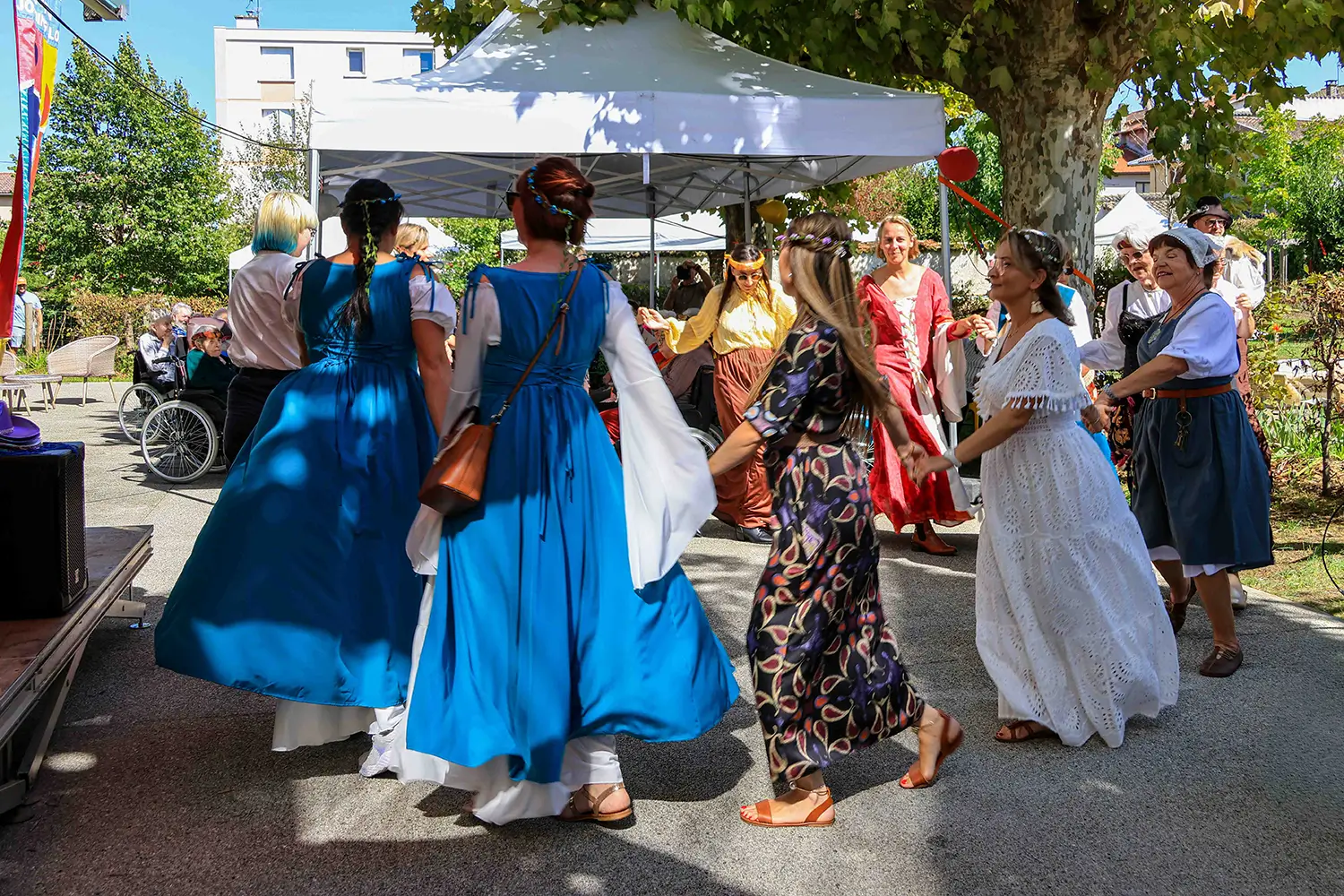 Sous un soleil magnifique de nombreuses familles sont venues, aux cotés des résidents pour écouter l’orchestre et visiter les nombreux stands d’animation et partager le verre de l’amitié et une gaufre autour de la buvette