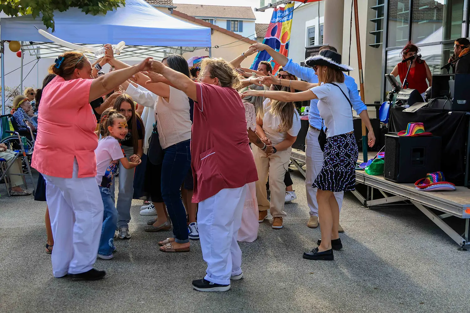 Ce dimanche ensoleillé, bien qu’un peu venteux a vu de nombreuses familles venir, aux côtés des résidents pour écouter l’orchestre OZANTI Prod, visiter les nombreux stands d’animation, animaux et jeux pour enfants et partager le verre de l’amitié avec une gaufre ou une barbe à papa autour de la buvette